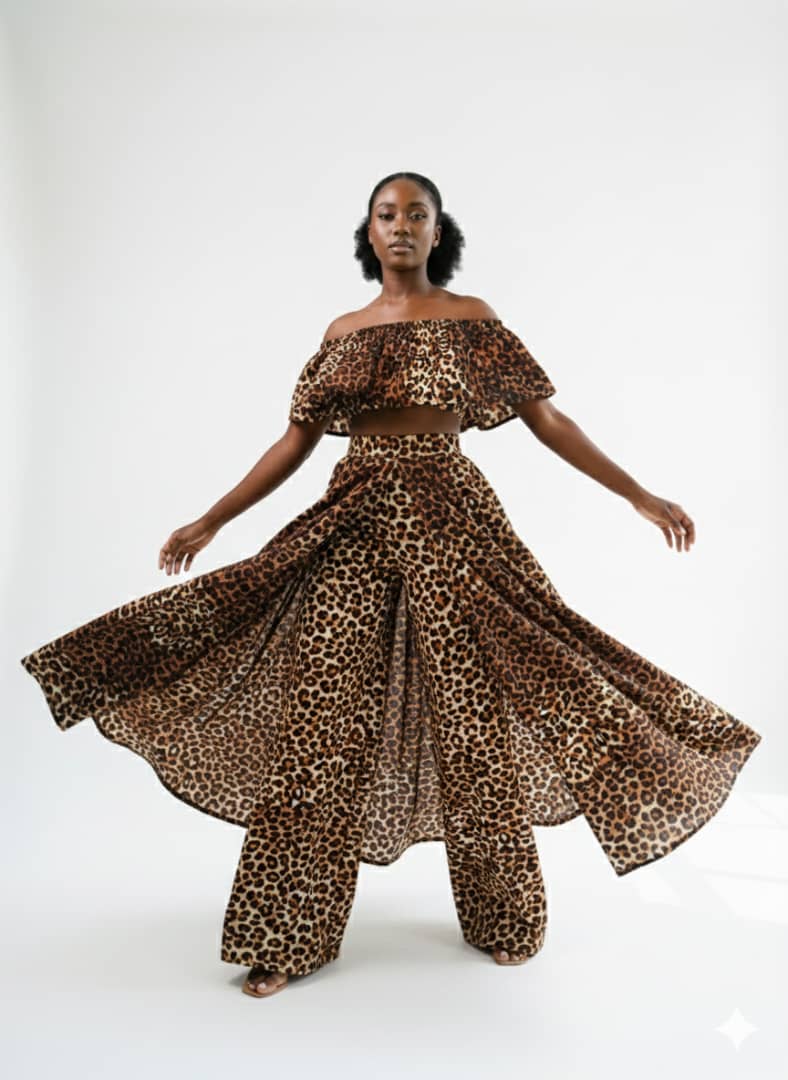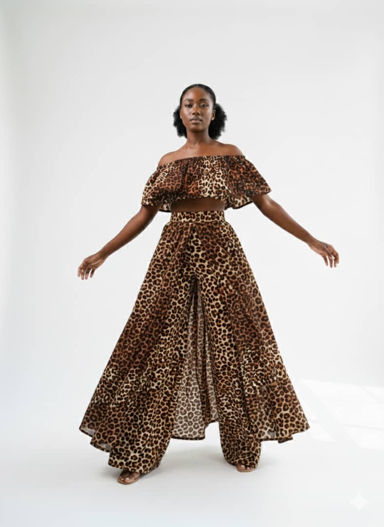 Amotekun In Elegance African Inspired Skirt Over Pant With Crop Top Combo