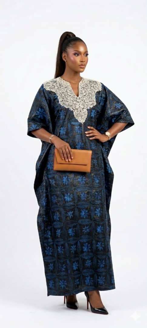 On Mother’s Day, give mom this Elegant Kampala Batik Boubou Maxi Dress in XL is a stunning piece made from 100% cotton with a beautiful blue color and intricate lace and embroidered accents. It features a V-neckline, short kimono sleeves, and a pullover closure, making it perfect for various occasions such as weddings, parties, formal events, and business functions. The dress is machine washable and has a long maxi length, offering a lightweight and comfortable fit for the summer and spring seasons. Handmade in Nigeria, this dress combines traditional batik patterns with a touch of bohemian and classic style, making it a unique and stylish choice for any fashion-forward woman.